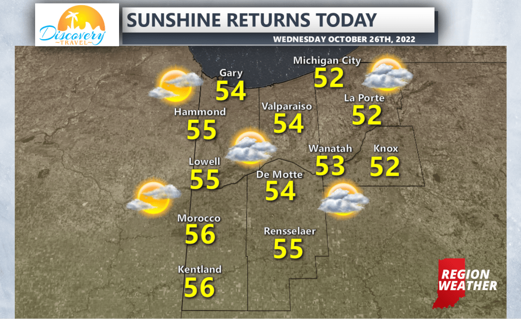 Our cold front is through and the rain is moving east this morning as cooler air continues to filter into the Region. We’ll begin improving each hour today with a gradual transition to sunshine by this afternoon! It will be on the breezy to downright windy side today with gusts over 30 mph at times. This will keep our temps from doing much with highs in the low to mid 50s at best this afternoon. Enjoy your Wednesday everyone!