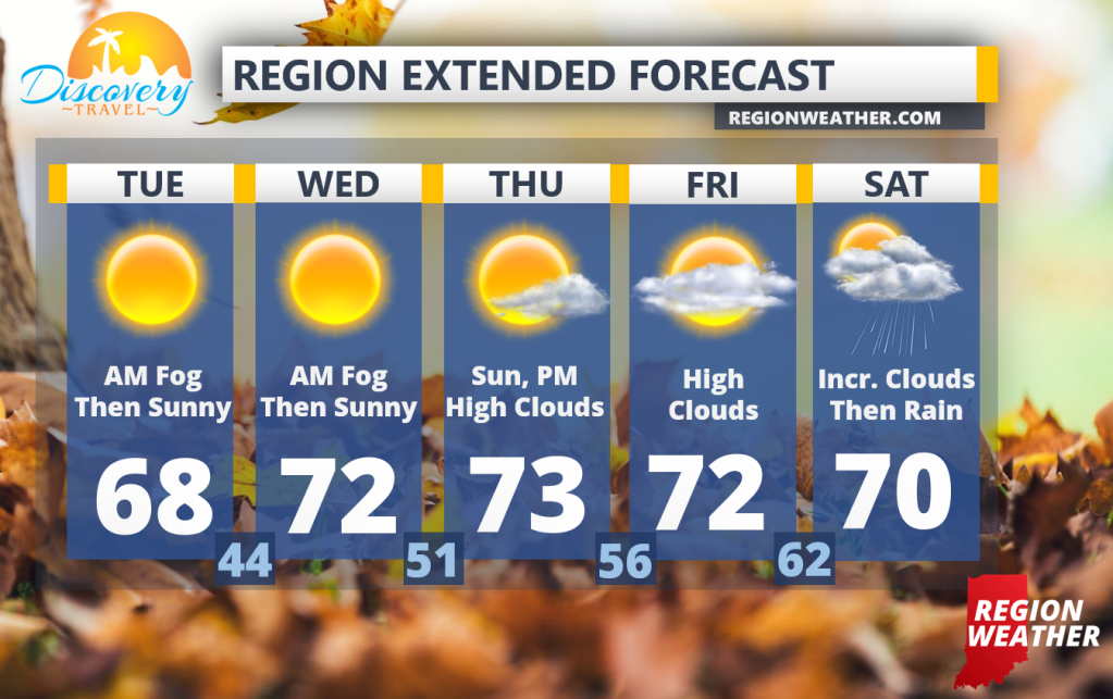 It will feel more like September this week and not just for a day or two, but for the next 8-9 days we’re looking to stay on the warm side of a series of larger storm systems to our west! Morning fog will be the theme the next two mornings but we’ll turn towards lots of sunshine and highs pushing into the 70s. You’ll notice that more high clouds enter the forecast later this week before our next chance of rain arrives with a stronger cold front later Saturday into Sunday. Enjoy that yardwork this week, no excuses!