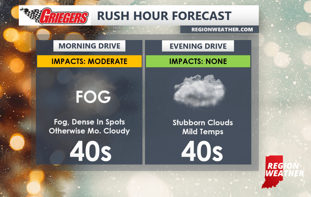 Dense fog this morning will continue to slowly burn off today, but it’ll take some time. We’re not alone in this dreary, foggy atmosphere. From here all the way to the Gulf Coast this low cloud, foggy pattern exists this morning thanks to a steady stream of moisture off the Pacific Ocean and Gulf of Mexico! We’ll bring in slightly drier air later today into tonight with some cloud breaks possible. The good news about all of this is that temps are rather mild and will hold in the 40s all day.
