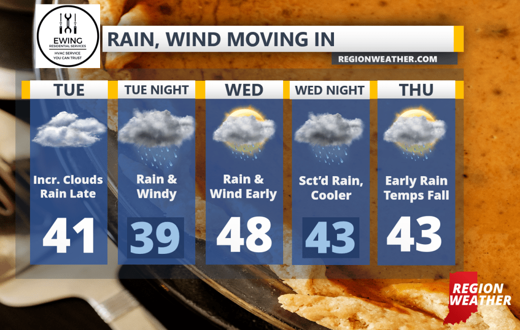 Happy Tuesday! That well advertised storm system begins to move in tonight with a few rounds of rain and gusty winds. We’ll get some breaks in the rain during the day Wednesday before another wave develops Wednesday night into early Thursday. Temps will begin to fall later Thursday into Thursday night with a few snow showers to end this whole event on Friday. Still not seeing a lot of snow from this one, but it will set the stage for next week as this system drops cold air into the eastern US with some staying power! Join us this evening for a special Region Weather LIVE to discuss the latest regarding our White Christmas chances!