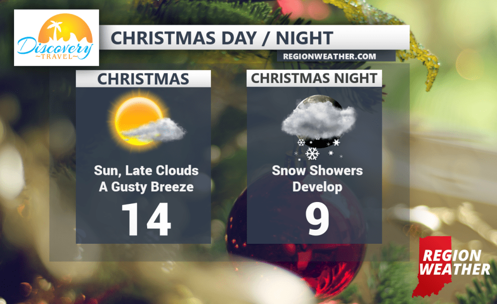 We are so thankful for each and every one of you and we hope you have a very Merry Christmas! Bundle up today (again!) as the sunshine will be deceiving with wind chills still below zero, but we’re improving! A clipper system will bring some scattered snow through the Region tonight with light accumulations possible. A big warm up is slated for the week ahead with 50s likely by Thursday/Friday! So hang on! Finally, on an operational note, we will not have a Region Weather LIVE tonight, but we’ll join you again soon. Enjoy your Christmas everyone!