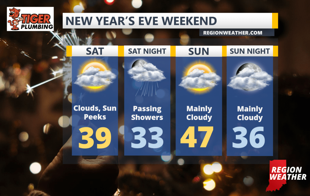 First of all, a very happy New Year to our Region Weather family! Relatively quiet weather is expected this weekend, but we have a weak little system that will glide through later this evening into tonight bringing passing showers. (temps will remain above freezing and will warm a few degrees as this system moves in so we’re not expecting any icing issues) Expect mild temps for our first day of 2023 with mainly cloudy skies.
