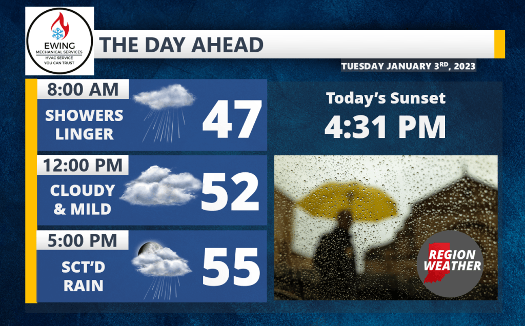 A warm front will move north through the Region today barely reaching the lakeshore–but this will help to get mid 50 to low 60 degree air into NWI this afternoon. Morning rain will become widely scattered by midday before a few afternoon thunderstorms develop along and ahead of the cold front with this entire system. Cooler air doesn’t move in until tonight so enjoy the spring-like afternoon!