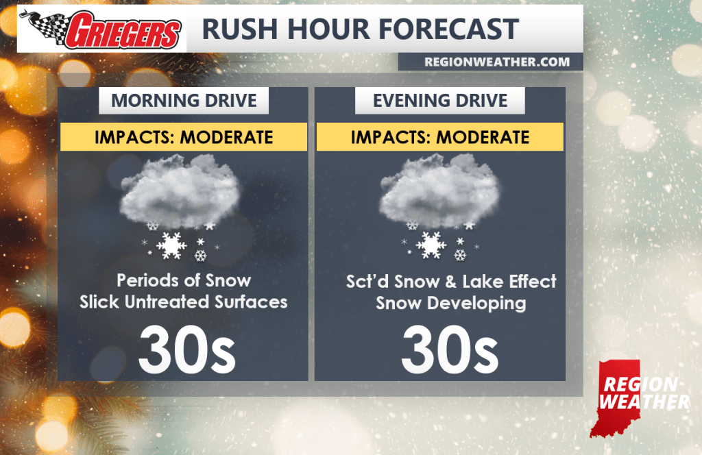 Roadways are fairing well this morning as long as they’re treated and that will remain the case today with temps helping us out as they hover in the low 30s. Still expecting a general 2-4 inches of snow today, but as we turn on the lake effect machine this evening into tonight, we’ll pick up a few additional inches in our lakeshore counties through tomorrow.