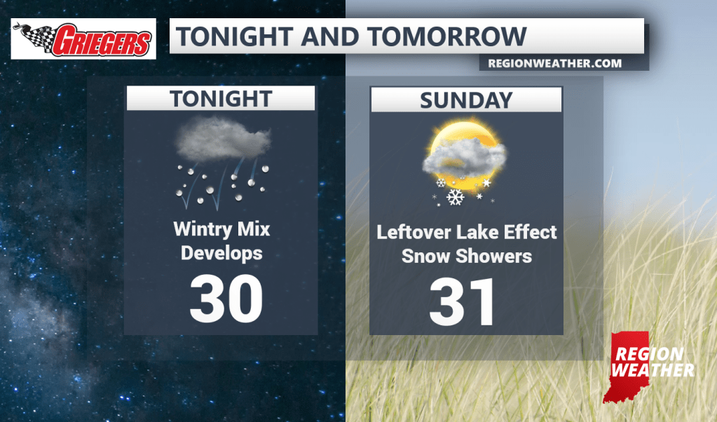 Behind this system we get some snow, but nothing much in terms of accumulation. Temps will hold steady right near 30 for our Sunday as any lake effect snow showers come to an end.
