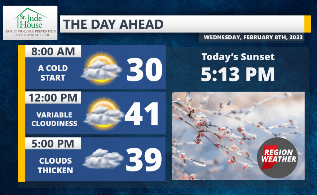 Enjoy the quiet weather today as we’ll turn a bit loud with some roaring wind expected tomorrow. Clouds will mix with sun-peeks early today before clouds thicken up later today. High temps will reach into the low to mid 40s.