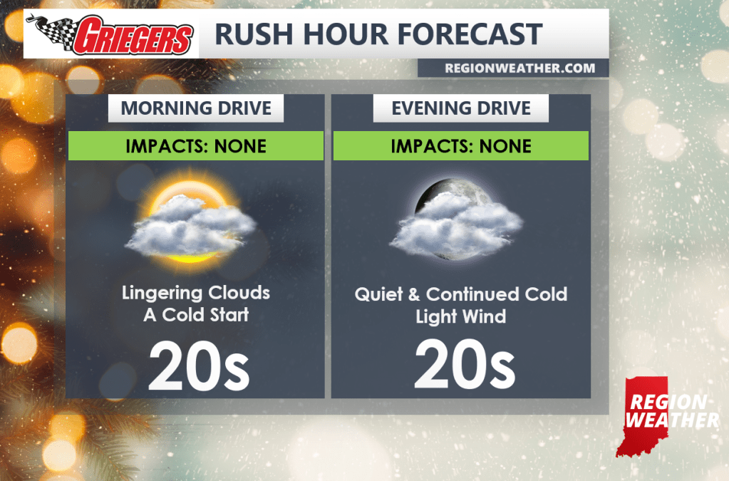 Our weather across a good portion of the US (except out west) will relax the next few days as high pressure takes the driver’s seat this weekend. The result locally will be a cold day today followed by rebounding temps this weekend with increasing amounts of sunshine! No travel impacts today!