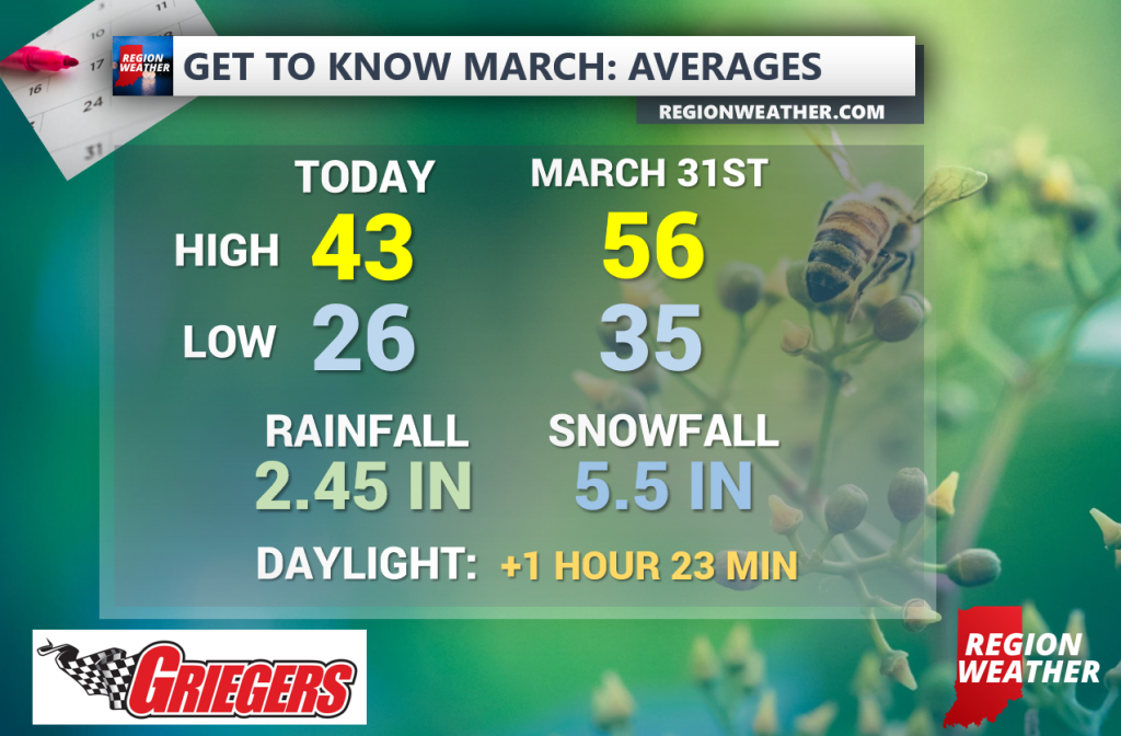 As for the month of March, we warm quickly this month with averages by month’s end in the mid 50s! It’s not our rainiest month, but we typically have an active storm track through the Region and yes, there is still snow climatologically. The biggest thing is the daylight we gain (plus the time change)! 7:12pm sunsets by the end of the month!
