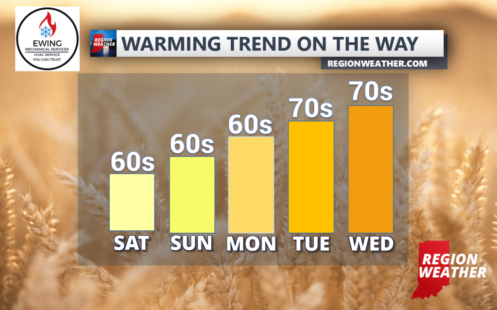 High pressure will gradually slide east of us allowing warmer air to slowly build into the Region as the strong April sun goes to work on our cooler atmosphere left behind by our mid-week cold front.