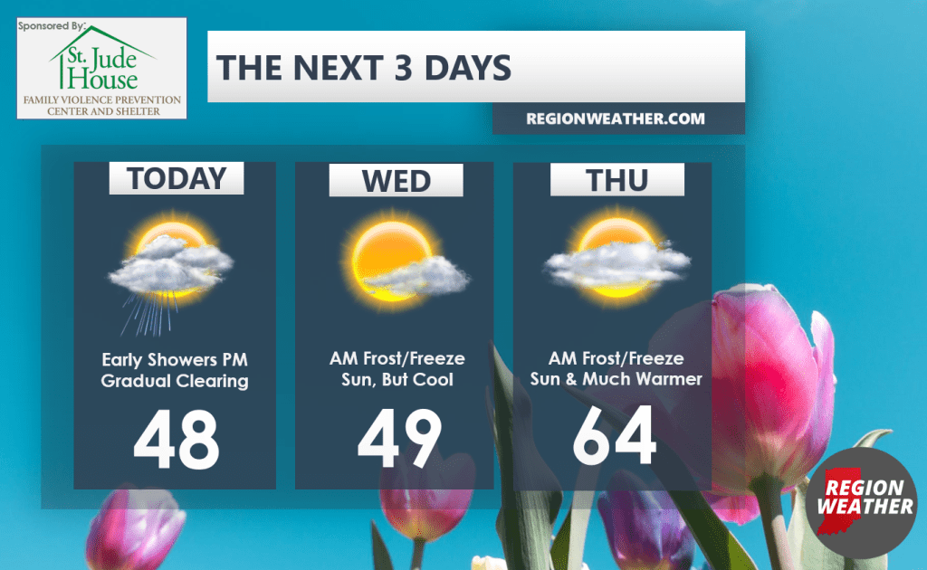 Expect widespread frost and freeze tonight and then again tomorrow night as high pressure settles in. Temps won’t recover much despite the sunshine on Wednesday thanks to another day of wind off the lake, but by Thursday it’s a different story with sunshine and high temps heading right into the low to mid 60s with late day clouds moving in!