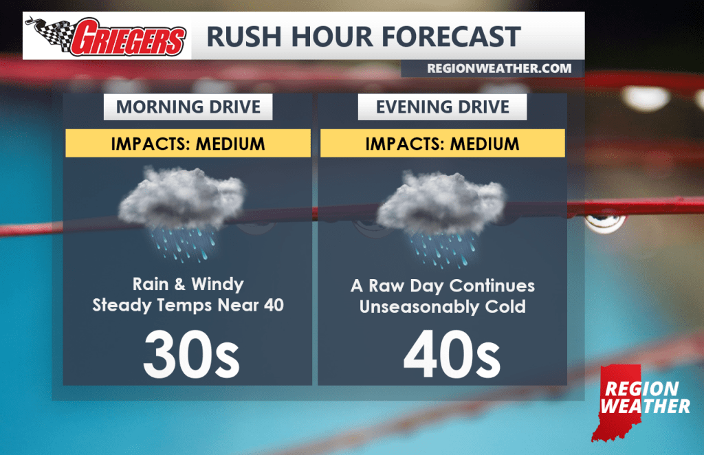 The month of May typically gives us our first 90 degree day. Imagine that! It can always bring days like this, although they aren’t very common. None-the-less, here we are with an unseasonably cold airmass working through the Great Lakes on a powerhouse low pressure system. The result will be a steady rain for much of the day, winds that gust over 40 mph at times, and temps that remain steady right near 40. If wet snowflakes mix in, don’t worry, this will all be out of here by Wednesday 😬