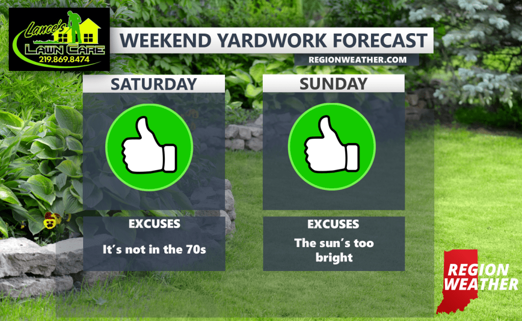 As always, we have your excuses if you want to get OUT of doing yardwork, but it really will be perfect. Enjoy! See you Sunday evening for our LIVE broadcast!