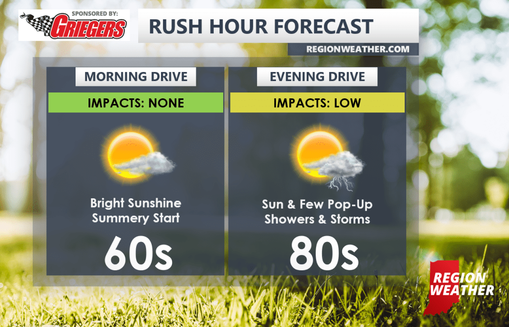 Happy Thursday! Expect a repeat of yesterday weather-wise as sunshine and some humidity will help bubble up a few more showers and storms today. High temps will push the upper 80s as this warm stretch continues! Today will be our last chance for rain for a while as drier air blows in from the east tomorrow through the weekend–so much like yesterday, you’re one of the lucky ones if you get some rain!