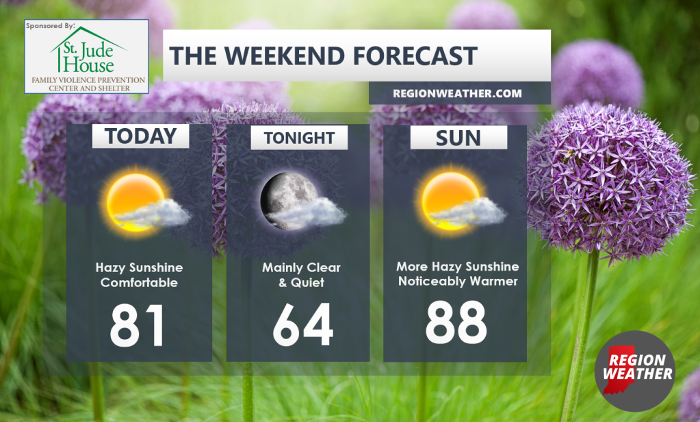 Congrats everyone you made it to the weekend! Our weather continues to look fantastic with warming temps, especially Sunday (as we move into a rather hot week next week). The one downside this weekend is some light atmospheric smoke from wildfires in western Canada. You’ll notice the haze and milky white sky at times today and tomorrow–not a lot of this will get down to the surface, but our air quality won’t be quite as good as it could be. Enjoy the weekend, we’ll chat again on our Region Weather LIVE broadcast Sunday evening.