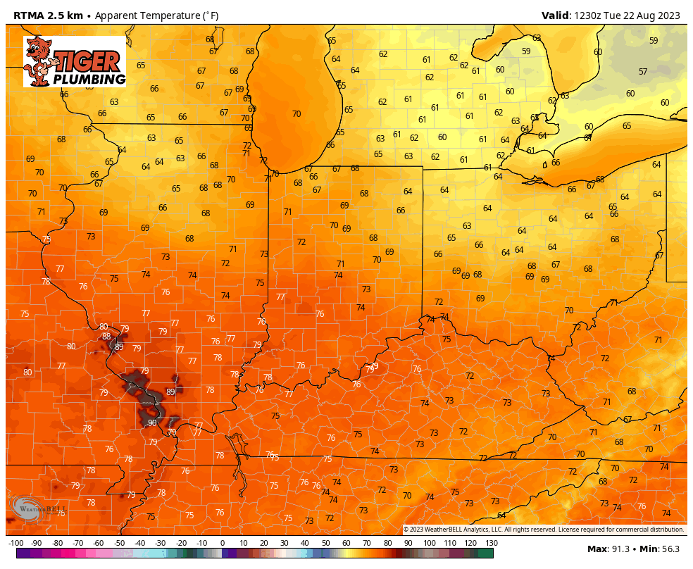 Take a look at our heat indices (or feels like temps) from today. (see below) Locations just 30-40 miles west of us in Illinois were pushing 100+ today as the thick humidity and heat within that “heat dome” isn’t far off! This dome of heat and incredible humidity is expected to push into the Region tomorrow and Thursday bringing dangerous heat indices into northwest Indiana as well. Plan accordingly if any plans take you outside of air conditioned air.