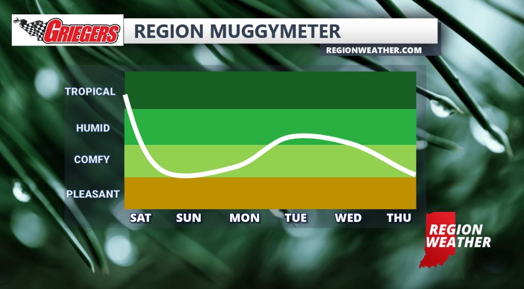 Anyone else cold? Just kidding. But what a difference in temps and eventually humidity as drier air continues to work its way into the Region. Tomorrow will go from a bit sticky outside to noticeably more comfortable by evening and we’ll hold in the rather comfortable category through next week with no surges of tropical humidity expected!