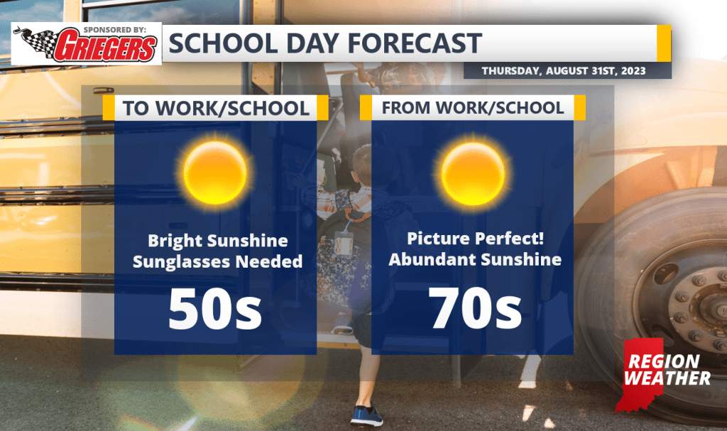 Happy Thursday! We’re almost there…Don’t forget the sunglasses out the door this morning and keep them with you as we have lots of sunshine in store all the way through the middle portion of next week! After a cool start this morning we’ll warm nicely into the mid 70s this afternoon with a light breeze and low humidity. A true San Diego-like forecast is setting up as a ridge of high pressure takes control of the Great Lakes weather and brings us quiet weather for the extended to include our Labor Day Weekend! However, that heat will be making a gradual return to the forecast with 90s expected by Sunday.
