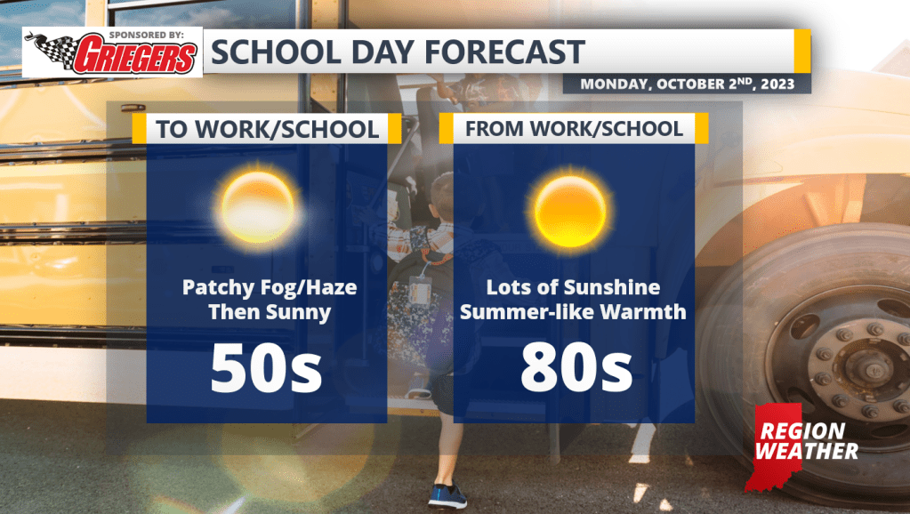 Good Monday morning everyone! The calendar flipped over to October, but our temperatures are stuck in August as we’ll have another day with highs pushing the mid 80s! This is all out ahead of a large storm system that will bring an abrupt change to our summery temps later this week. Until then, enjoy the warmth and sunshine! We have another day of this tomorrow 🙂