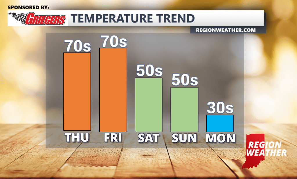 Happy Thursday! We’re on the warm side of things through Friday afternoon with periodic rain out ahead of a sharp cold front. The colder air will move in through two phases–the first will bring us down into the 50s this weekend before another front drops us into the upper 30s and low 40s for highs to begin next week! Yikes! Overnight lows next week will likely fall into the mid 20s bringing a widespread freeze to the Region.
