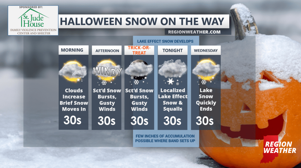 Who’s ready for our first snow of the season? (collective groan…) Ready or not, it’s here and on Halloween none-the-less. This will not be a blockbuster snow by any means, but we have a few opportunities for impacted travel later today into tonight. We’ve covered the timing, amounts, and impacts in detail in our Region Weather LIVE broadcasts the last two nights and the forecast still looks very much on track.