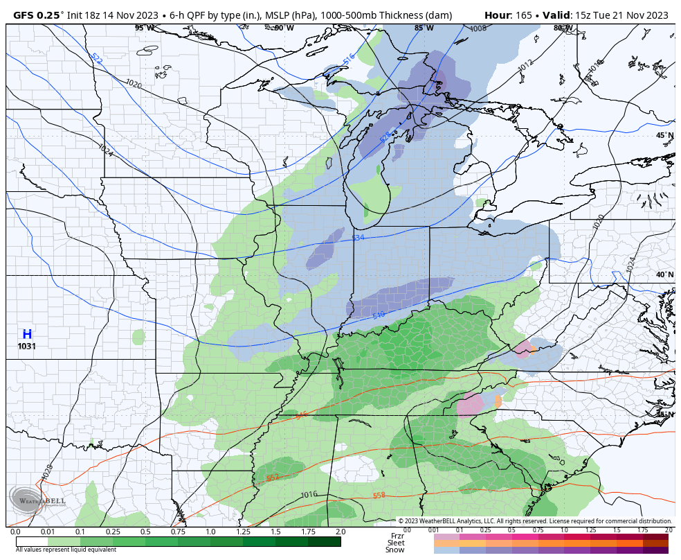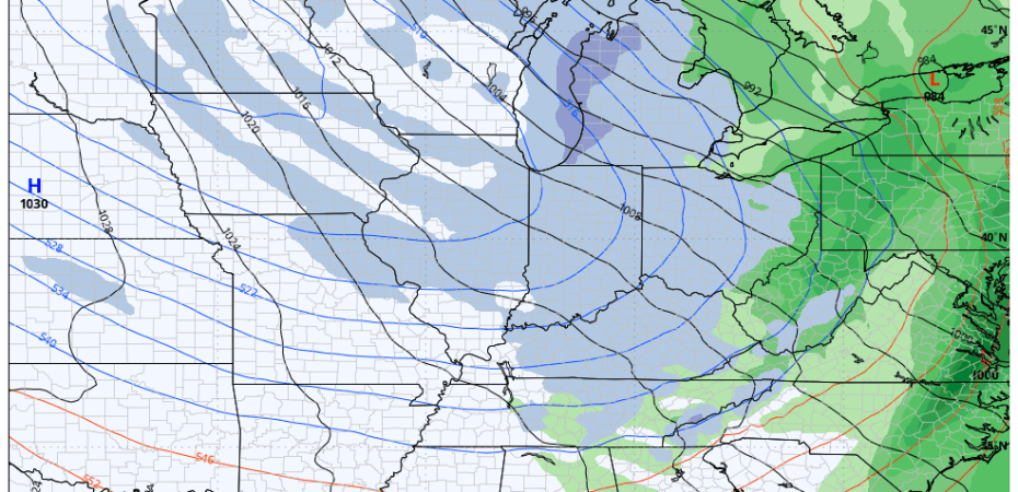 The latest Euro creates a stronger storm system in the US that keeps the colder air from diving in–so a milder, rainier look. Meanwhile the GFS and GEM continue to show cold and some snow heading our way–still a big split, so we’ll give it another day to see if we can actually have some agreement! Update again tomorrow!