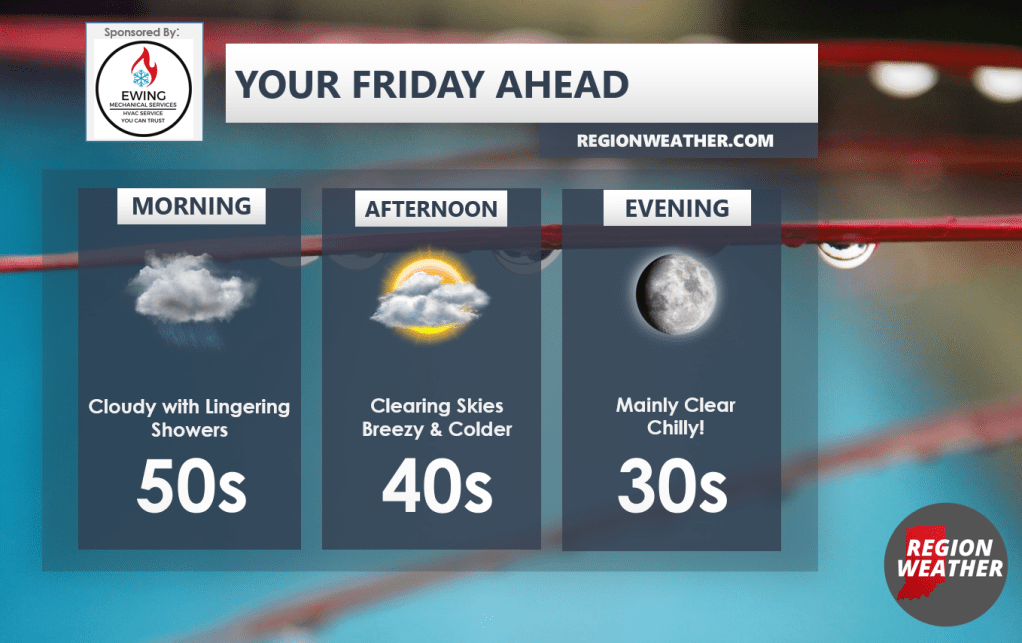Happy Friday! Our cold front is moving through as we speak and temps will begin to tumble as we go throughout our day. Any leftover showers will fade and eventually skies will begin to clear out this afternoon with a gusty wind and temps sliding back through the 40s. We’ll be in the 30s by the time your evening plans roll around but mainly clear skies will make for a beautiful, but chilly end to our Friday. Enjoy the day everyone!