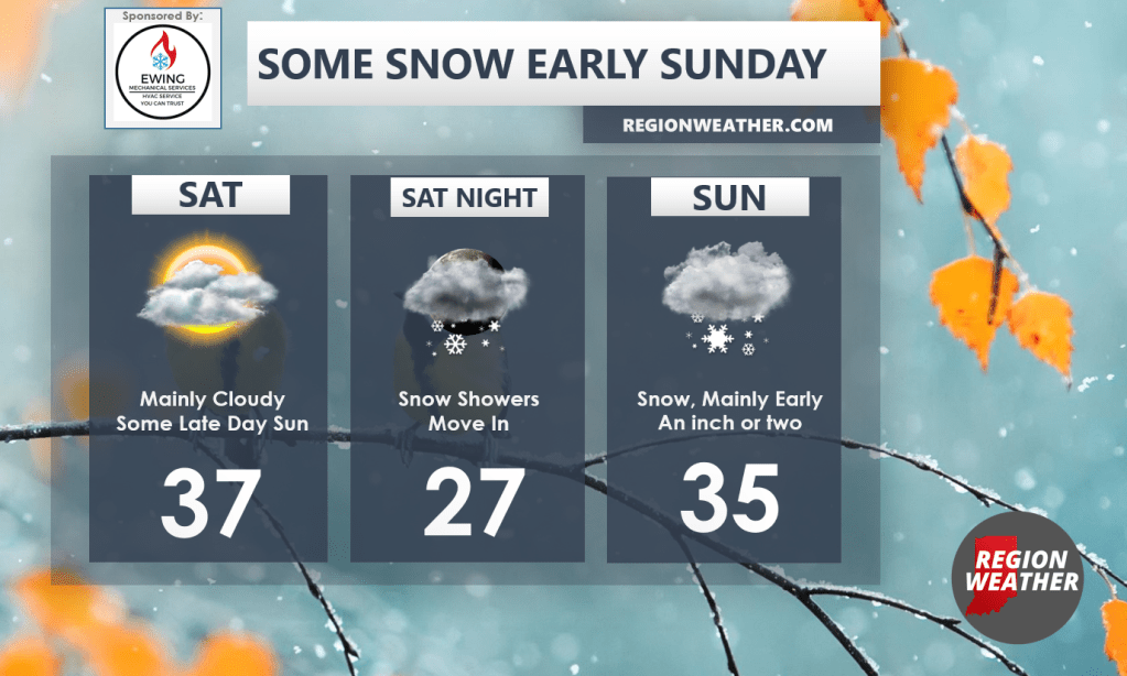 We’re in store for some snow this weekend–but don’t get too excited about it as we’re not expecting much. We’ll have clouds that give way to some late day sun Saturday with chilly highs in the mid to upper 30s at best. Saturday night into early Sunday a developing storm system will move through bringing some snow. We could see some steady snow Sunday morning before this system heads out by Sunday afternoon.