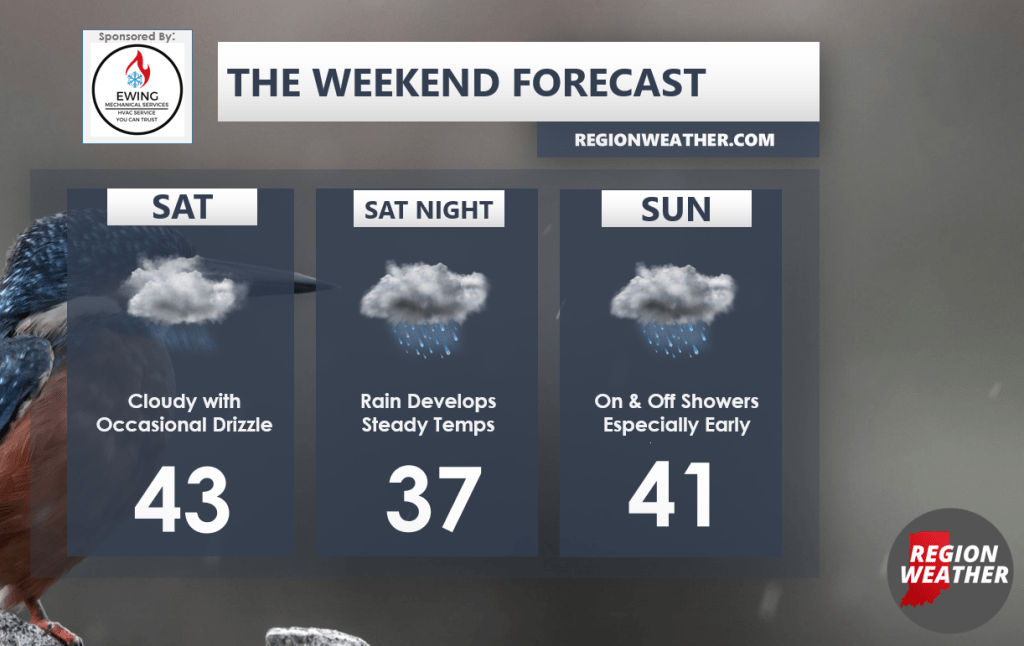 A bit of a gloomy weekend is expected as we’ll be dealing with another area of low pressure that brings more rain through the Region late Saturday into Sunday. Temps will remain on the steady side in the upper 30s and low 40s pretty much all weekend. Grab a good book or knock out that holiday shopping while the weather isn’t the best. Enjoy! We’ll see you Sunday night for our Region Weather LIVE broadcast!