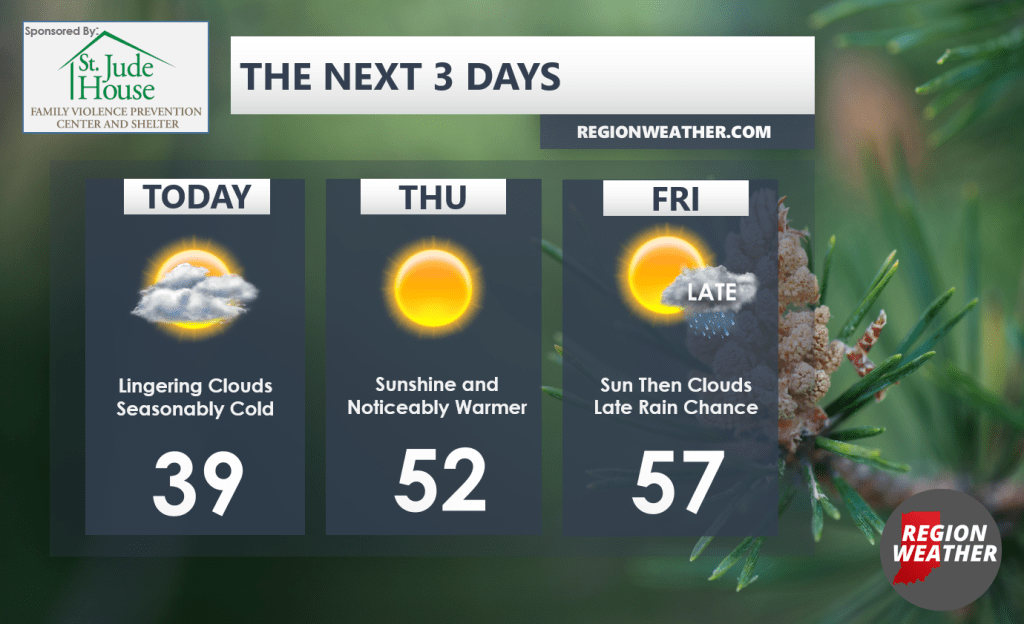 Happy Wednesday! We have a nice warm up on the way as our weekend storm system begins to develop in the southern Plains. Out ahead of it, a strong southwest flow will develop from Texas and that will bring some mild air our way beginning tomorrow all the way through early Saturday! Clouds will linger today, but we’ll break out in welcome sunshine Thursday and for the first portion of our Friday! As far as that weekend storm system goes, it looks to just be a rainmaker for us as of now–more details on that in our next post!
