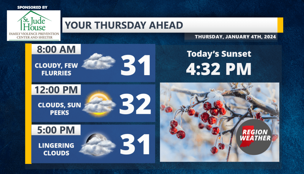 Enjoy today’s quiet weather because our active pattern REALLY gets going this weekend and especially next week with a storm to watch. Until then, clouds will give way to some sunshine today with steady temps right near the freezing mark. Have a great Thursday everyone!