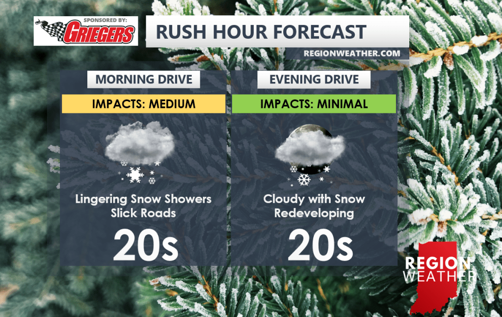 Overnight snow will create a tricky morning rush hour as snow showers continue throughout the morning before gradually diminishing in coverage. We’re not expecting a lot of snow from this, but it’s a prime example of how little it takes to create issues on roadways. Expect cloudy skies midday today before snow begins to fill back in later this afternoon into the evening.