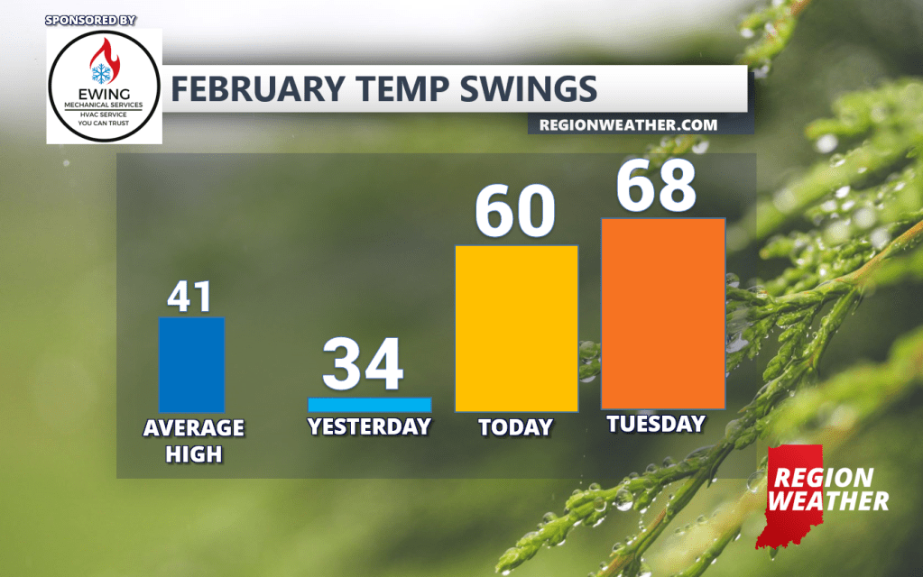 This weekend is a prime example–34 yesterday and 60 today. Just incredible how quickly things can change in the Region! Expect a return to spring temps today through Tuesday as we begin to track our next storm system in from the west. Sunshine today will give way to increasing high clouds with highs pushing the 60 degree mark on a brisk southwest wind. We’ll push into the 60s the next two days before rain really begins to takeover with this system. We’ll chat all about it in tonight’s Region Weather LIVE broadcast!