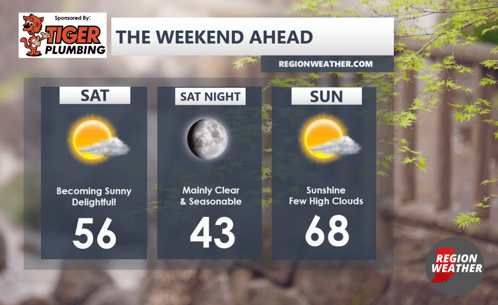 Congrats everyone, you made it to the weekend! And we look GREAT! Our morning clouds are quickly giving way to sunshine and we’ll spend the rest of the weekend in our mainly clear skies. Temps will be comfortably cool today but will rebound tomorrow to near 70 with a southerly breeze. Our next shot at rain arrives Monday with some thunderstorm chances as well! More details on that in our Region Weather LIVE broadcast on Sunday evening. See you then!