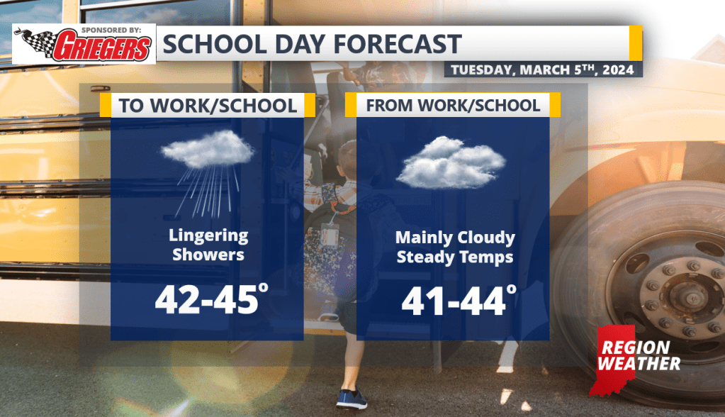After a night of rumbles, we’re nice and stable this morning–but that also means colder! Temps are in the low to mid 40s this morning and they’ll hold there for the entire day as showers give way to cloudy skies. We’ll have a bit of a breeze out of the north today making for a much different feeling afternoon around here!