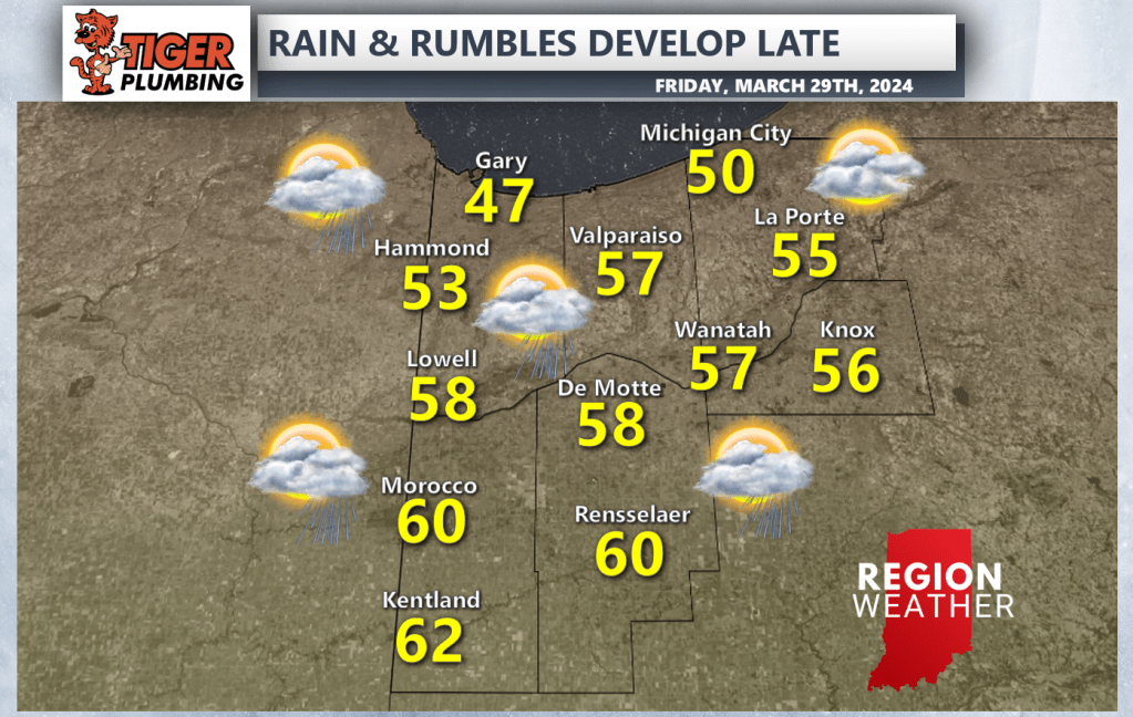 Most of our day will be dry with increasing clouds. We’re still expecting rain and storms to develop later today with rain likely for your Friday evening and Friday night plans. Should get a good soaking out of some of the storms tonight before rain gradually pushes east on Saturday…before more moves in to end the weekend.