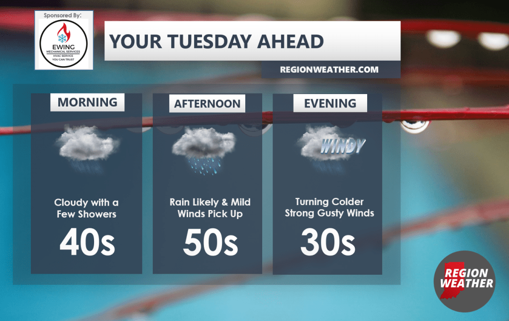 Our cold front will be moving through today bringing another round of rain (and potentially a storm or two) before it develops into a full-blown powerful low pressure system right over the Great Lakes. Temps will push into the mid 50s this afternoon until the front passes…and then temps will fall quickly into the 30s by late evening. Winds will become gusty later today with gusts over 35 mph possible after the front moves through. We’ll remain on the chilly side of things over the next several days with a rain and wet snow expected tomorrow and Thursday.