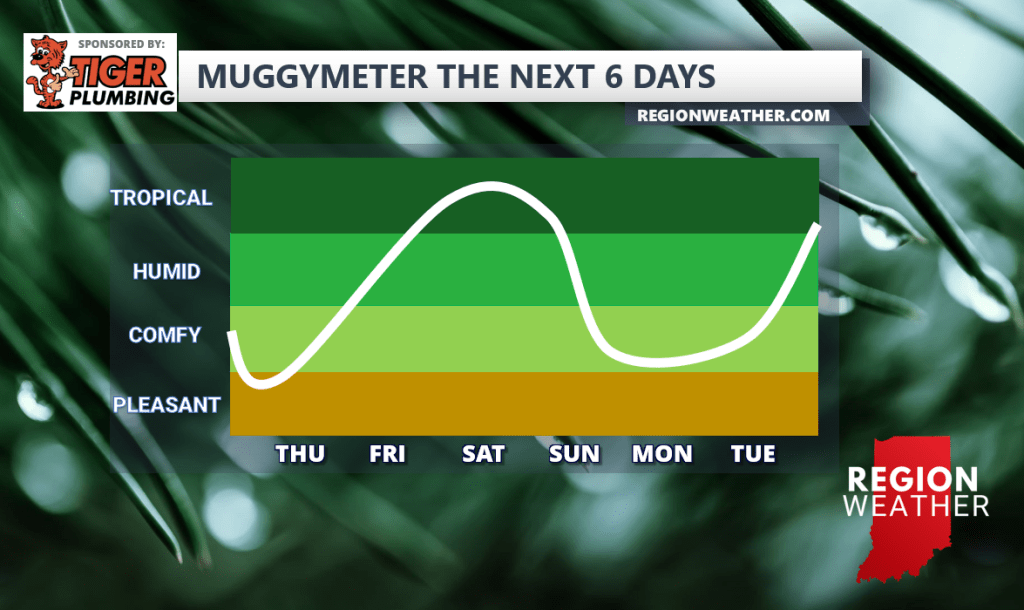As you know from living here, we can’t have nice things forever. Humidity will make a rapid return tomorrow into tomorrow night with storm chances to follow. We’ll feel tropical around here on Saturday before another dose of drier, more comfortable air moves in to start next week. All indication is that we’ll turn rather stormy and much more humid around here later next week for the 4th of July and beyond.
