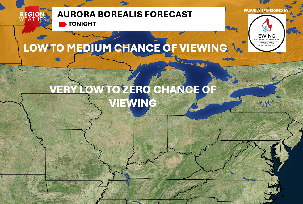 Doesn’t look likely. The perfect combo of the Aurora and the peak of the Perseid meteor shower took place last night–but the Aurora will likely push back north tonight plus we’ll be dealing with some high cloudiness off of rain to our southwest.