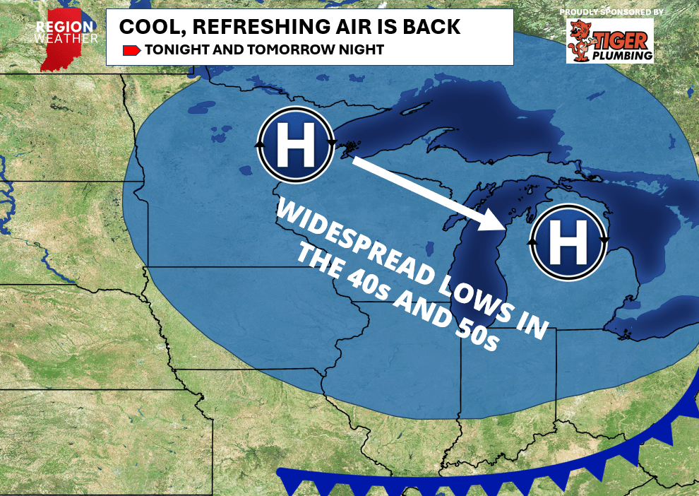 Did you feel the change today? A secondary front is now through the Hoosier State bringing in a refreshing dose of cooler, drier air. This drier air will be with us all the way through Wednesday before humidity returns on Thursday. These gusty north winds are kicking up the lake as expected and dangerous swim conditions will be present the rest of today and for Labor Day! Per usual on our holiday weekends, we don’t want you to take time out of your schedule for a LIVE broadcast so enjoy the time with family! Enjoy the comfortable air everyone!