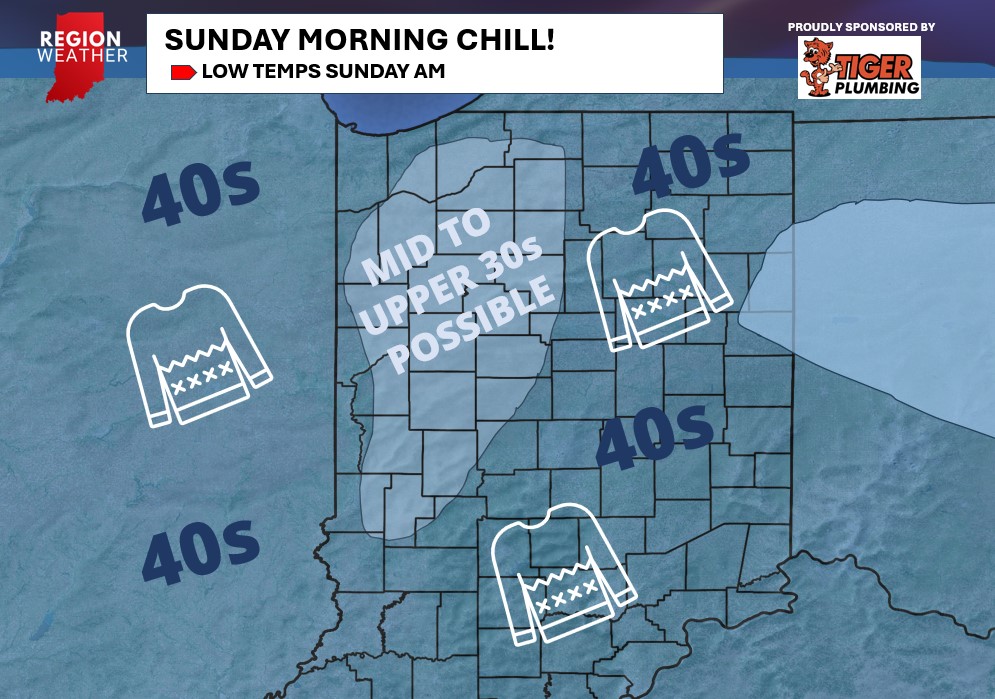 The cold front is through the Region and we’ll see lake effect showers begin to develop today through Saturday. High pressure will then settle in Saturday night providing clear skies and some of the coolest temps we’ve had in months around here. Waking up Sunday morning you can expect temps in the upper 30s to low 40s across the Region with the exception being along the lakeshore where temps will likely hold around 50. Some of those traditionally colder outlying locations may even have a few mid 30s on the board! Patchy frost is possible in the coldest of locations.