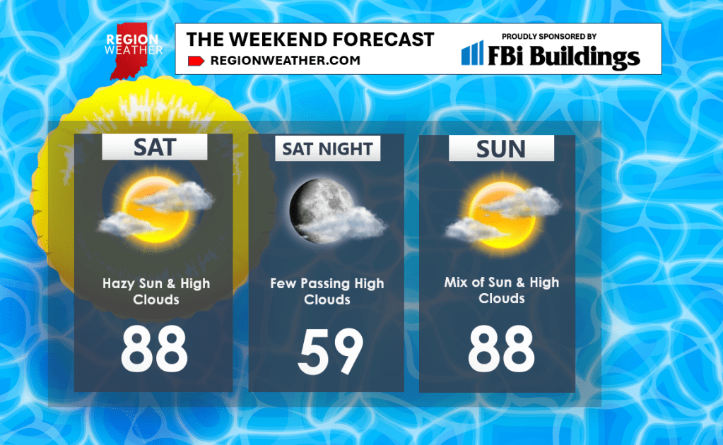 We’re in store for a dry, rather hot weekend around here with highs pushing the upper 80s both Saturday and Sunday. Certainly not fall-fest weather, but any outdoor plans are a go! Just keep up on that hydration. Overnight lows will still cool down into the upper 50s with our manageable humidity levels. Enjoy everyone!