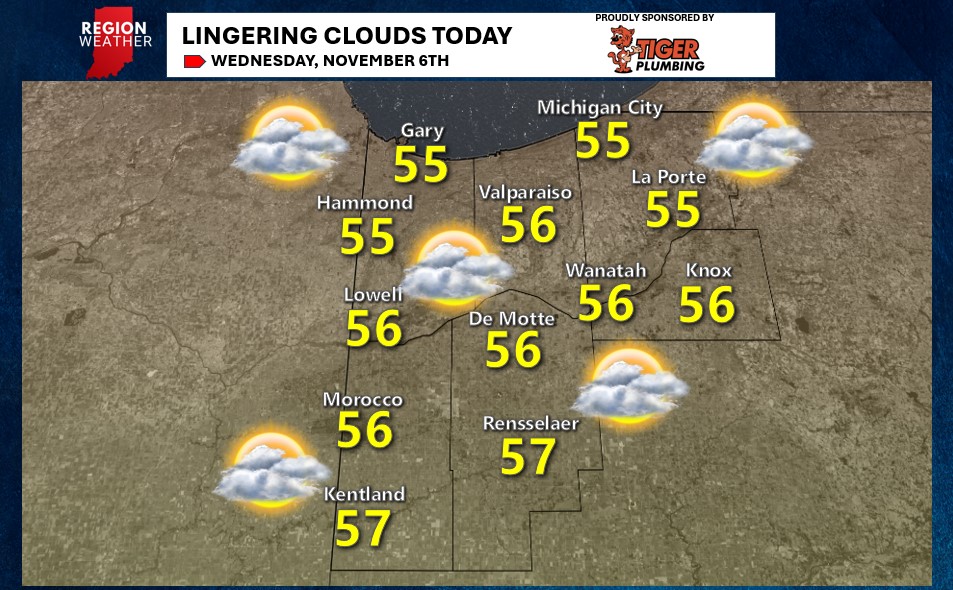 Good Wednesday morning everyone! We’ll have some stubborn cloud cover and cooler temps on the way today with highs right around average for once in the mid 50s. Wind will be much lighter today providing some relief for those who suffered from poor hair syndrome the last few days!