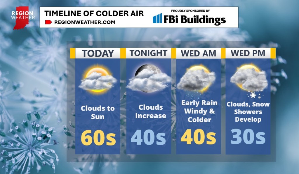 The temperature drop arrives Wednesday as a large pool of much colder air plows into the Region. Gusty winds and morning rain will accompany this colder air with 40s to start and 30s to finish the day out tomorrow. We likely won’t have much precip during the day before clouds and snow showers look to return later Wednesday into Wednesday night.