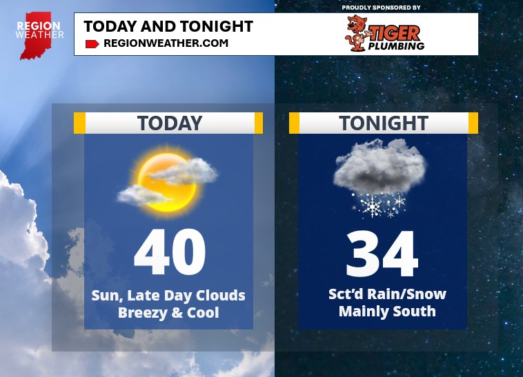 Good Tuesday morning everyone! How nice is it to see the sunshine again? Bright sunshine can be expected today–it’s so good to have it back–before clouds begin to increase later today out ahead of our next storm system. It will be breezy and cool today with highs in the upper 30s and low 40s. Tonight our next storm system moves in. The area of low pressure will be well south of us so we’ll have eyes on the northern edge of the shield of precip coming off this low. As a result, there will be a sharp cutoff to where the rain/snow mix is and where there is nothing falling. That line looks to take place somewhere over the Region (of course!). So we’ll paint the forecast with rain/snow moving in tonight–favoring areas that are further south. A shift to the north with this low by even a few miles would bring the action all the way up to the lakeshore–stay tuned!