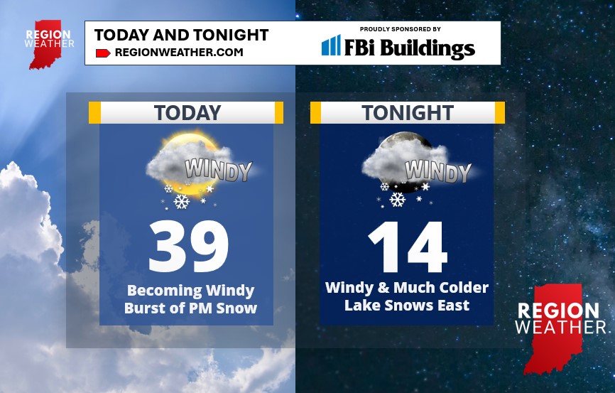 Lake effect snow will get going tonight and tomorrow and will focus on LaPorte County with snow showers possible back into Porter County tomorrow. We’re not expecting a lot of snow, but a few inches are possible in LaPorte County by tomorrow night.