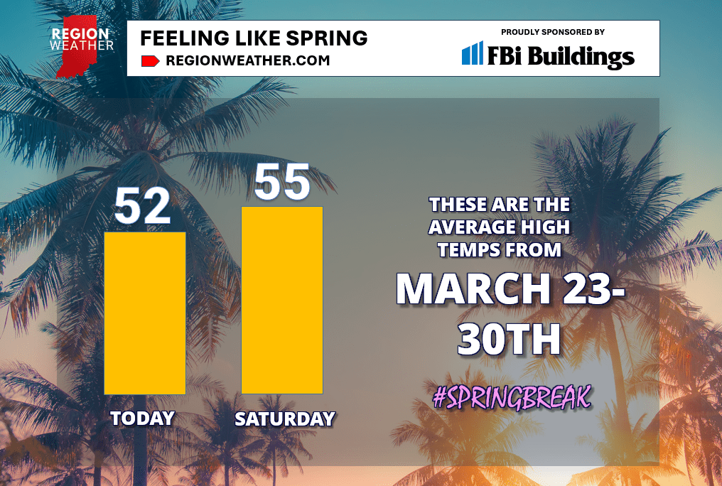 Mother Nature will be paying us back in January by the looks of it, but until then we can enjoy the thaw as much as possible. Our highs will push the low to mid 50s the next two days–not record-setting by any means, but these highs are what you’d expect in late March in the Region! Rain and gusty winds will be with us today and tonight before heading out early Saturday morning!