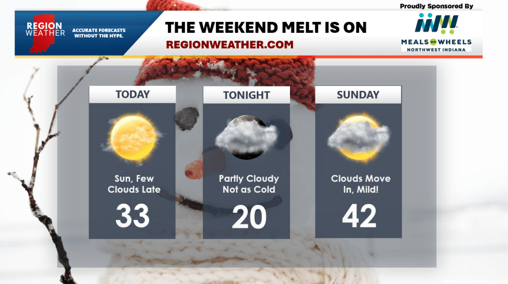 Sure, it will start with slow drips, but we have a string of mild days ahead of us and compared to where we’ve been…it will feel like an early Spring! We’ll head above freezing (barely) this afternoon with 40s expected tomorrow. We’ll likely make a push near 50 Monday through Wednesday before cooler air, but nothing arctic, returns later next week. Enjoy the sun today and happy weekend!