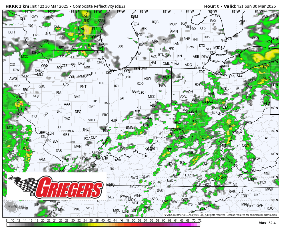 The HRRR is the most bullish model bringing an intense line of wind damage producing storms through the state. The NAM model shows more of a broken line, but still with the intensity we expect out of a line today.