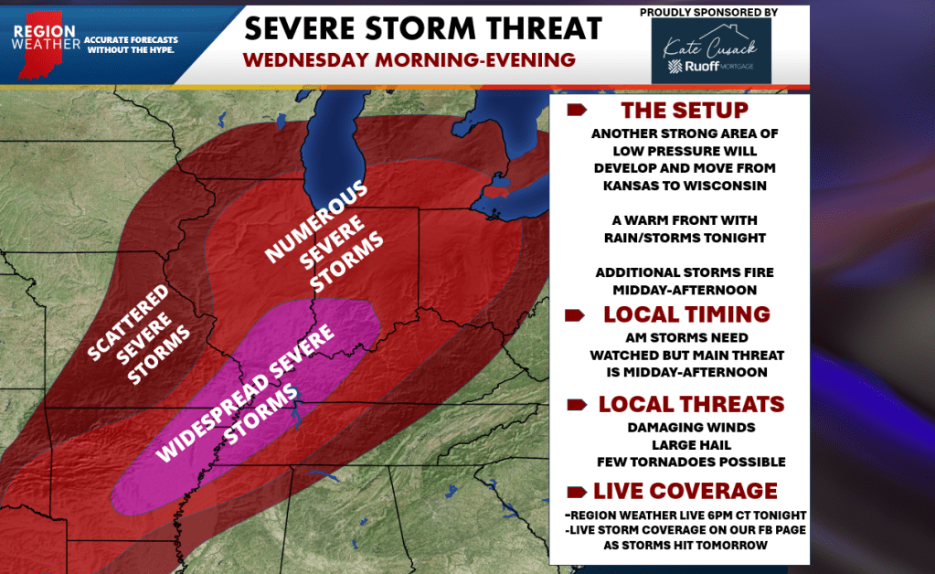 Let’s discuss the latest in a special Region Weather LIVE broadcast tonight at 6pm CT. We’ll also provide LIVE coverage during these storms all afternoon tomorrow as needed.