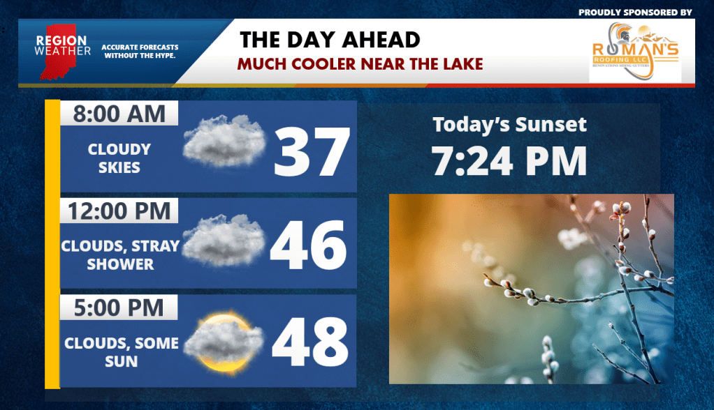 Happy Thursday everyone! We’re continuing on the cool side of things today with a big temp difference between north and south. Areas close to the lake will remain in the 40s, meanwhile our southern locations will be pushing near 60 later this afternoon. Clouds will hang tough this morning with a stray shower from that activity coming out of Wisconsin. We should see at least some partial clearing by afternoon. Enjoy your day everyone!